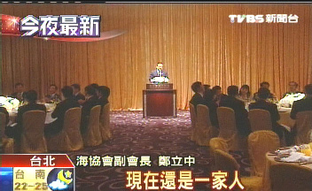 鄭立中晚間也再次談起晚宴提到的“冬季到臺北來看雨”這首歌,可惜他不會唱了。不過當晚的氣氛讓他想唱首歌,歌名就叫“我們都是一家人”,唱完之后他還謝謝大家“在精神上付出的損失”。