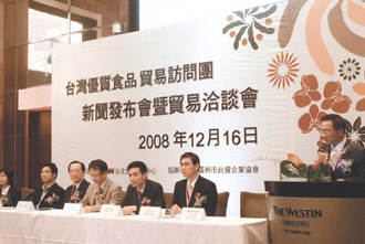 中新網(wǎng)12月17日電 據(jù)臺灣《聯(lián)合報》報道,臺北世界貿(mào)易中心總經(jīng)理劉錫威興奮指出,“我們是兩岸大三通后,第一個率領貿(mào)易訪問團參訪大陸的團體”,此次臺灣貿(mào)協(xié)所率領的“臺灣優(yōu)質(zhì)食品貿(mào)易訪問團”,其12家臺灣食品制造商,保證是臺灣最優(yōu)質(zhì),絕對讓大陸民眾吃得安心的臺灣食品。