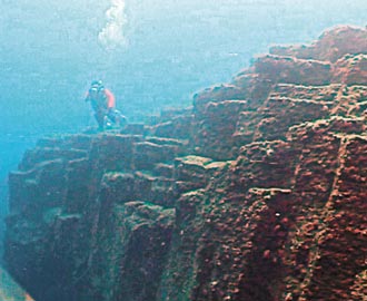 中新網1月4日電 據臺灣《聯合報》報道,在澎湖北方海域的大磽嶼海底有一處開口朝西北、呈微笑狀的柱狀玄武巖,長度達200公尺,高約10公尺,每枝石柱的直徑約1公尺,節理明顯宛如“海底城墻”。