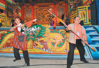 臺中市文化局長黃國榮和市議員王秋冬等,吹奏《上海灘》、《高山青》、《那魯灣》、《茉莉花》等歌謠,團員們聽到音樂,開心得站起來拍照、跳舞,大聲合唱。