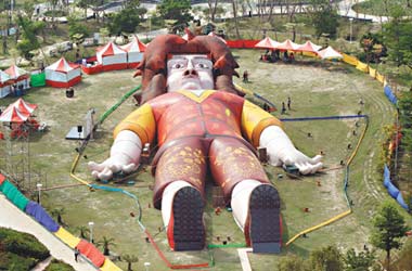 中新網4月2日電 據臺灣聯合報報道,臺中市兒童藝術節今晚登場,一劇團在公園打造長近60米的“格列佛人體藝術探索館”,市民站在巨大的“格列佛”身旁,頓時變成“小人”,好像進入童話故事情境,從格列佛的腳底進入,能認識人體器官。