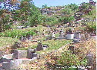 據臺灣東森新聞報道,臺北縣觀音山區公墓數以千計的往生者在這里安息,墓碑上頭的碑文記載著他們的身份以及來自何方,這橫書的兩個字,就是往生者的祖籍。