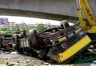 中新網12月20日電 據臺灣東森新聞網報道,臺中縣今天上午發生一起重大車禍,一輛15噸重的大貨車,疑似煞車失靈,失控闖紅燈直接撞上前方4臺摩托車,造成3死2傷的悲劇。