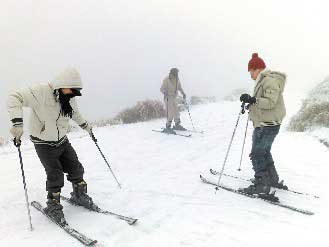 義守大學(xué)學(xué)生陳泉潣和讀暨南大學(xué)的表弟候鈞元,扛著12公斤裝備上合歡山,“沒(méi)想到臺(tái)灣也能滑雪!”他滑了好多趟,都沒(méi)摔跤,“追雪、賞雪不稀奇,到合歡山滑雪才夠酷!”