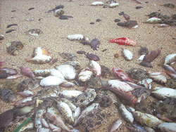 中新網2月18日電 據臺灣中國時報報道,四面環海的澎湖望安離島,連日來四周海灘布滿了魚尸,望安“國中”校長洪嬡慧表示“太可怕了,三、四百公尺長的海灘全是魚尸!彼f,望安有七個海灘,只走了兩處海灘,情況都一樣嚴重,希望當局相關單位趕緊處理,否則會對環境帶來災難。