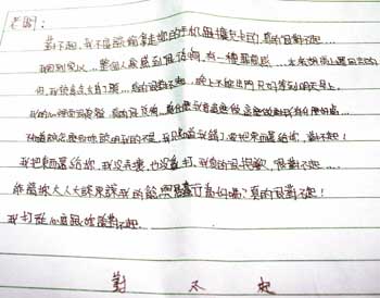 “老板:對不起,我不應該拿走你的手機跟擴充卡的…。我回到家整個人就感到很后悔,有一種罪惡感,本來想馬上還回去的,但我被貪念充(按,應是沖)昏了頭…,我的心里面很復雜…,能請你大人大諒(按,應是量),原諒我的貪念及愚蠢行為好嗎?真的很對不起。”