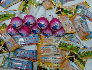 去年底“立委”選選戰開打在臺南縣還沒看到糖果外包裝加注候選人廣告,事過4個月,候選人的廣告就有了糖果廣告,甚至連棒棒糖都出爐。