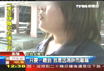 據(jù)臺(tái)灣TVBS報(bào)道,何姓女學(xué)生原本就對(duì)身材有點(diǎn)自卑,在工作上更加努力;但她說,這個(gè)月4日接到店長來電,暗示她“身高減掉110還是超重,可能會(huì)被裁員”;女學(xué)生傷心痛哭,沒想到圓潤體型會(huì)丟了工作。