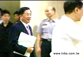據臺灣媒體報道,陳水扁抵達時手拿資料袋,下車步入臺北地檢署,全程一言不發。