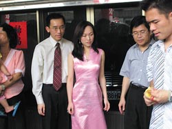特偵組懷疑黃睿靚(左二)娘家可能也是扁家人頭,10日傳訊黃睿靚的弟弟(右)、父親黃百祿(右二)及母親,但疑因未收到傳票,3人均未到場應訊。(臺灣《中國時報》圖)