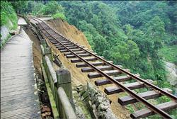 阿里山鐵路路基滑落百米深山谷 鐵軌懸空(圖)