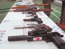臺警方查獲透過網(wǎng)絡(luò)營銷具殺傷力的改造手槍,是目前黑幫分子的最愛。(圖:臺灣《中國時報》)