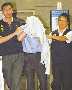 寄子彈恐嚇陳水扁一案,臺北市警察局中正一分局24日循線在北縣中和逮捕46歲的康姓男子(中)。(陳志源攝)
