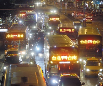 中新網1月24日電 據臺灣《聯合報》報道,春節假期將屆,臺北市主要干道紛紛涌現大批返鄉車潮,尤其是臺北車站、客運總站、年貨大街周邊區域車流多又慢,幾乎已成大型汽車停車場。
