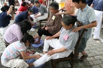 “看到媽媽的腳歷盡風霜長了繭,因日曬留下雙色的印記,內心真是百感交集,頓時體悟到必須更貼心、用心地孝敬媽媽。”一名江姓小姐在為媽媽浴足后道出心中的感動。現(xiàn)場不少媽媽及子女在浴足的過程都滿懷感動,有人眼眶泛紅遲遲難以言語,有人不禁流下激動的淚水,讓旁人也強烈感受濃濃的孝親之情。