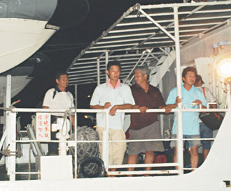 “整個(gè)晚上都是船只引擎發(fā)出的隆隆聲,海釣船好像隨時(shí)要爆炸!”釣客林乙民說,他們?nèi)ズa灒恢醯耐蝗槐蝗辗结斏希毡娟懤m(xù)出動(dòng)5艘船艇,兩艘日本船左右包夾,還有兩架飛機(jī)在上空監(jiān)控。海釣船雖全速駛離,5個(gè)小時(shí)后仍被日方追上。