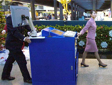 臺灣華航公司為提供更快速便捷的服務,在桃園機場推出“移動柜臺”,隨時轉至各地點,以彌補固定柜臺不足的缺點。旅客可快速辦理登機手續,大型托運行李也有專人服務,節省不少時間。《中國時報》圖 洪圣飛 攝