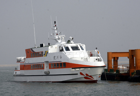 一百八十二人座“仙洲號”交通船已經(jīng)駛抵金門,將于明年初投入大小金門海上輸運行列。“中央社”圖 倪國炎 攝