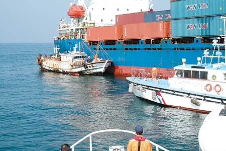 圖:臺灣漁船與萬噸貨輪迎頭對撞