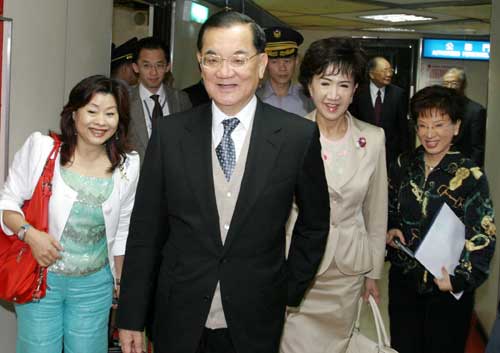 中國國民黨榮譽主席連戰(左二)夫婦二十八日搭機,經香港前往北京訪問。(臺灣“中央社”圖)
