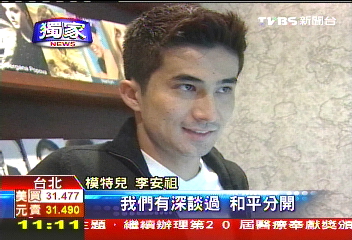 中新網5月11日電 據臺灣TVBS電視臺報道,最近有一個模特兒界的新人格外引人注意,因為他曾經是當紅歌手蕭亞軒的前男友,他的名字叫李安祖,長的高大帥氣是巴西和日本的混血兒,前女友的名氣比他大上許多,但這幾年來臺灣發展,雖然曾窮到連續2個月只吃面包度日,李安祖在臺灣日子過的很辛苦,但在巴西卻是家產雄厚,母親擁有40英畝大的農場,算是巴西農場小開。今天接受TVBS獨家訪問,他也認了跟蕭亞軒的往日戀情。