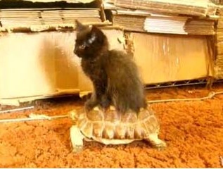 這個類似《浦島太郎》童話故事的情節,竟然在真實世界中不斷發生,小動物們似乎都喜歡騎烏龜兜風的感覺,目前已經有狗、貓咪、鸚鵡甚至小嬰兒與成人都加入行列,形成特別的“遛龜潮”。