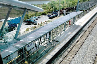 4月22日是世界地球日,臺南縣環保局及縣府工務處22日聯合在南科車站宣導綠能科技,臺南縣長蘇煥智說,臺鐵南科站六月底啟用,除太陽能發電具有綠色科技概念,因為車站通車,通勤族可利用大眾運輸系統到南科園區各廠上班,先搭火車到南科站,再搭園區接駁車,更能有效節能減碳。