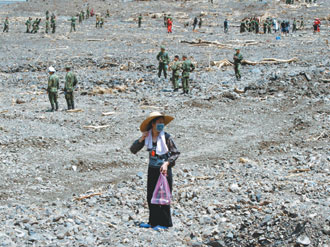 中新網(wǎng)8月18日電 臺(tái)灣海軍陸戰(zhàn)隊(duì)中被稱為“黑衣部隊(duì)”的特勤部隊(duì),在高雄縣那瑪夏鄉(xiāng)受創(chuàng)最重的民族村救災(zāi),因挖土機(jī)無(wú)法挺進(jìn),他們以鼻嗅聞,拿鏟子、臉盆,一鏟一鏟地接力開(kāi)挖,先后找到三具遺體。