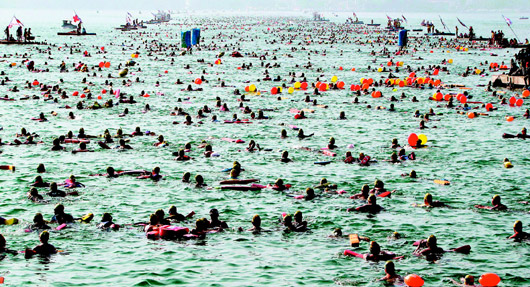 主持鳴槍下水的臺當局“行政院長”吳敦義說,比起他二十七年前舉辦首屆泳渡的規(guī)模,足足增加五十倍。南投縣長李朝卿說,二五八八八名泳者諧音“要我發(fā)發(fā)發(fā)”,所有參加的“勇者”都發(fā)發(fā)發(fā)。