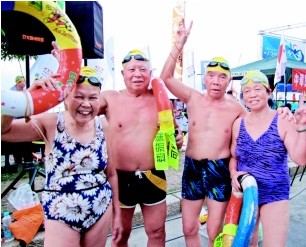 七十七歲的向延發(fā)也和太太同行,一起完成泳渡美夢,他說這次來臺旅游重點就是日月潭泳渡,接下來要和廣州冬泳會的“玩水一族”老友,一起游臺中、花蓮、臺南。