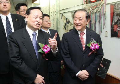 湖北省省委書記羅清泉、新黨主席郁慕明、前;鶗倍麻L焦仁和、大陸當代畫家周韶華和臺灣藝術家李奇茂等,21日上午皆出席“2010臺灣湖北 (武漢)周─荊楚文化聯展”開幕式典禮。