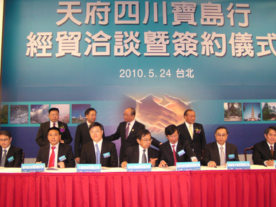 四川省工業(yè)經(jīng)濟(jì)聯(lián)合會與工業(yè)總會、臺灣區(qū)電機(jī)電子工業(yè)同業(yè)公會等川臺經(jīng)貿(mào)、旅游、農(nóng)業(yè)、文化團(tuán)體,上午共簽署5份合作協(xié)議。“貿(mào)協(xié)”下午在臺北國際會議中心舉辦川臺采購洽談會,預(yù)計安排上百場1對1洽談。