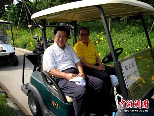 來自臺灣原海軍副總司令官沈方枰中將與大陸的海軍東海艦隊原司令員趙國鈞中將同為一組打球的兄弟,看到記者拍照,沈方枰中將對記者表示“來,給我們兄弟來一張。”(完)