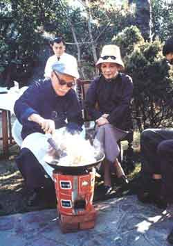 其實,這張照片照的是蔣介石為家人制作他獨門“雞油炒飯”時的畫面,在多數照片與場合中都相當嚴肅的蔣介石,只有在與家人團聚,進行他最愛的野炊時,才會露出這樣輕松和藹的一面,所以這張“蔣公炒飯照”可說相當經典,在不同時刻、地點,蔣介石炒飯都被留影,讓人感受這位褒貶不一歷史人物的另一面。