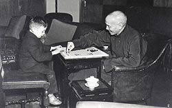 中新網(wǎng)6月3日電 據(jù)臺灣《旺報》報道,1954年,一幅拍攝于蔣介石和二孫孝武在士林官邸下西洋跳棋的照片,獲選國際攝影展覽人像第一獎。這不是因為它來自臺灣的“第一家庭”,應是其中自然流露的祖孫同樂親情。