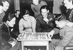 下棋不僅是蔣家生活的娛樂,蔣介石還以之作為外交聯(lián)誼活動(dòng)。1947年7月至9月,蔣在牯嶺避暑期間,美國杜魯門總統(tǒng)特使馬歇爾(George Catlett Marshall)六上牯嶺,協(xié)商調(diào)處國共問題。馬氏夫婦受到蔣介石與夫人熱情款待,游覽風(fēng)景名勝,也留下弈棋的記錄及畫面。蔣介石日記中多日載及。