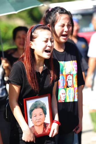 中新網8月15日電 莫拉克臺風帶給臺灣嚴重災情,高雄縣甲仙鄉小林村大批居民被土石流淹沒。甲仙鄉公所今天上午請千佛山協助為小林村9到18鄰遭淹埋的罹難村民,舉辦頭七法會,現場擁進千余名家屬,哭聲不斷,場面令人鼻酸。