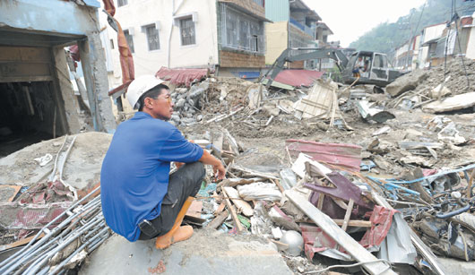 中新網8月24日電 據臺灣《聯合報》報道,全力支援救災的臺軍八軍團,連日來以直升機載運物資進入交通中斷的桃源鄉和那瑪夏鄉,23日進入那瑪夏鄉民族村和民權村,斷垣殘壁的災區看來宛如戰后世界,一片凄涼。