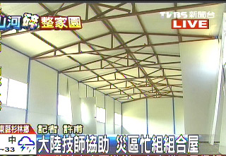 據臺灣TVBS報道,昨天3名大陸技術人員發現之前臺灣方面自行搭建的部份組合屋,因為沒有看清楚說明書,出現搭建錯誤的情況,包括內部隔間及窗戶等,因此在佳冬鄉原本已經搭好的組合屋,又拆掉重建。