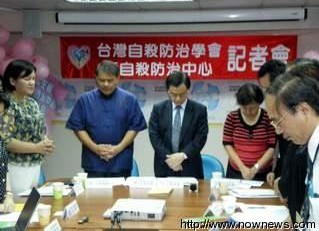 自殺防治學會8月31日召開記者會,呼吁“八八水災”后心靈重建的重要性。開會前,大家起立為“八八水災”罹難者默哀。圖片來源:臺灣“今日新聞”