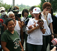 林志玲由臺灣紅十字會人員陪同,上午到高雄縣陸軍官校營區(qū)擔(dān)任半天志愿者,與小朋友、殘障災(zāi)民互動。很多民眾很興奮,利用行動電話的照相、錄像功能拍下第一線接觸的畫面。