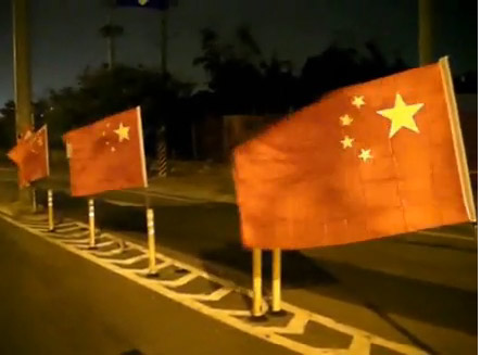 中新網12月21日電 據臺灣聯合報報道,陳云林今天將搭機抵達臺中清泉崗機場,附近的道路昨晚被插上9面五星紅旗。