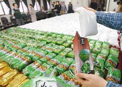 調查人員見狀立即上前將人、車扣留,并上船搜索,隨即在漁船前艙發現一密室,打開發現成堆K他命,分裝在茶葉、食品、飼料等不同產品袋子中,企圖魚目混珠。經清查后共有K他命成品八百四十七公斤,估計黑市價格高達十億元,是島內最大宗K他命走私案。