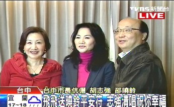 中新網(wǎng)1月29日電 據(jù)臺灣TVBS報道,帽子天后鳳飛飛為了明天演唱會,29日下午提前到臺中和市長胡志強、市長夫人邵曉鈴進行一場敘舊茶會。