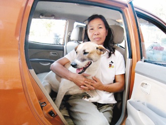 “狗的靈性,是人類永遠無法想象的。”顏口明緊攬著阿呆說,阿呆原本流浪街頭,兩年前她從收容所中把它救出來。顏口明長年喂養街頭的流浪動物,家中一直都收養7、8只,但家人及鄰居無法接受。