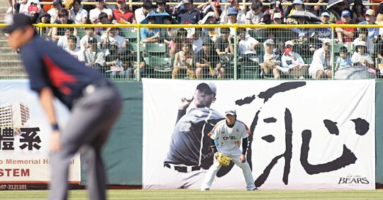 白底黑字的“恥”字,在全壘打墻二十三面廣告牌中,顯得格外搶眼,這塊廣告牌掛在左邊(左外野)數來第二塊位置,剛好正對熊隊休息室,也隱含意義。