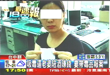 中新網3月26日電 據臺灣TVBS報道,彰化一名孫姓大陸配偶近日哭著到派出所報案,控訴丈夫吸毒,還要她到酒店陪酒賺錢。因此她既失望又害怕,帶了一包丈夫的毒品,跨區到臺中向警方報案。