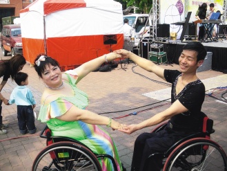 中新網4月6日電 據臺灣《聯合報》報道,臺北市罹患小兒麻痹,重度肢障的梁春錦3年前罹患癌癥,藉由練舞、瑜珈健身,也是小兒麻痹的丈夫蘇俊源陪伴在側并成舞伴,到處表演鼓勵殘障朋友。去年夫妻還到印度自助旅行1個月,創下坐輪椅到印度自助旅行的紀錄。