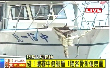 上午11點多,一艘滿載游客的游艇疑似受濃霧影響,視線不良,在?看a頭時,直接追撞到前方的游艇,游艇上23名乘客是來自大陸的游客,大部分年紀都比較大,不少人還是退休醫師,游客回想當時情況,還是非常害怕。