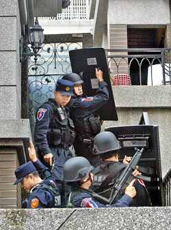 維安特勤隊是警界的精英組成,目前全臺共有一百三十名成員,“警政署長”王卓鈞已于昨深夜批準,今天派出四十人進駐臺中市;這批精銳部隊配備重武器,包括沖鋒槍、狙擊槍等,對黑道暴力犯罪具有壓制能力。